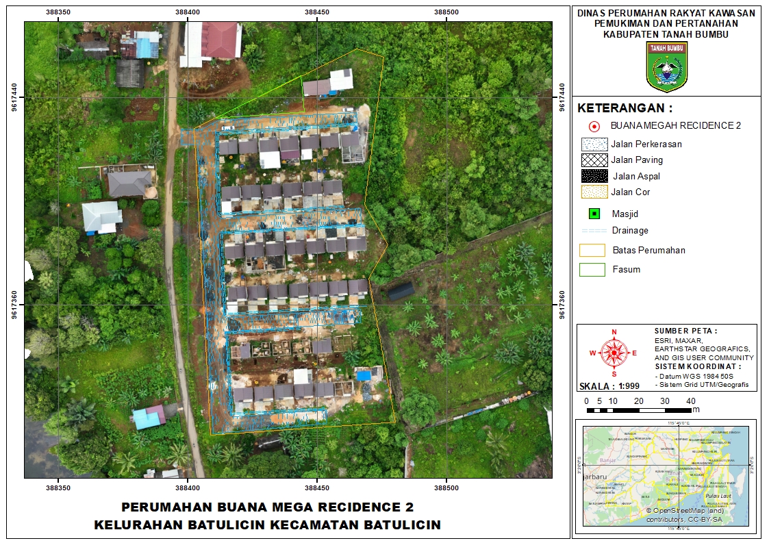 Perumahan BUANA MEGA RESIDENCE 2 merupakan pengembangan kawasan terpadu dengan total luas lahan 10,000 mΒ². Kawasan ini mengedepankan sanitasi dan mobilitas yang baik dengan alokasi jalan serta drainase seluas 2,589 mΒ².