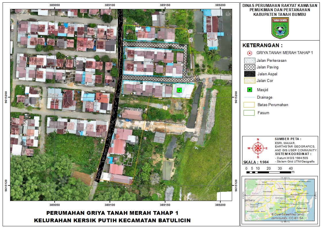 Perumahan GRIYA TANAH MERAH TAHAP 1 merupakan pengembangan kawasan terpadu dengan total luas lahan 5,000 mΒ². Kawasan ini mengedepankan sanitasi dan mobilitas yang baik dengan alokasi jalan serta drainase seluas 2,456 mΒ².