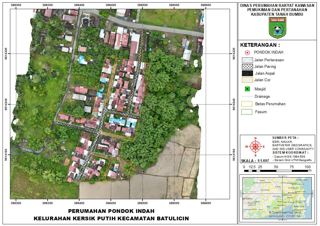 Perumahan PONDOK INDAH merupakan pengembangan kawasan terpadu dengan total luas lahan 15,500 mΒ². Kawasan ini mengedepankan sanitasi dan mobilitas yang baik dengan alokasi jalan serta drainase seluas 4,664 mΒ².